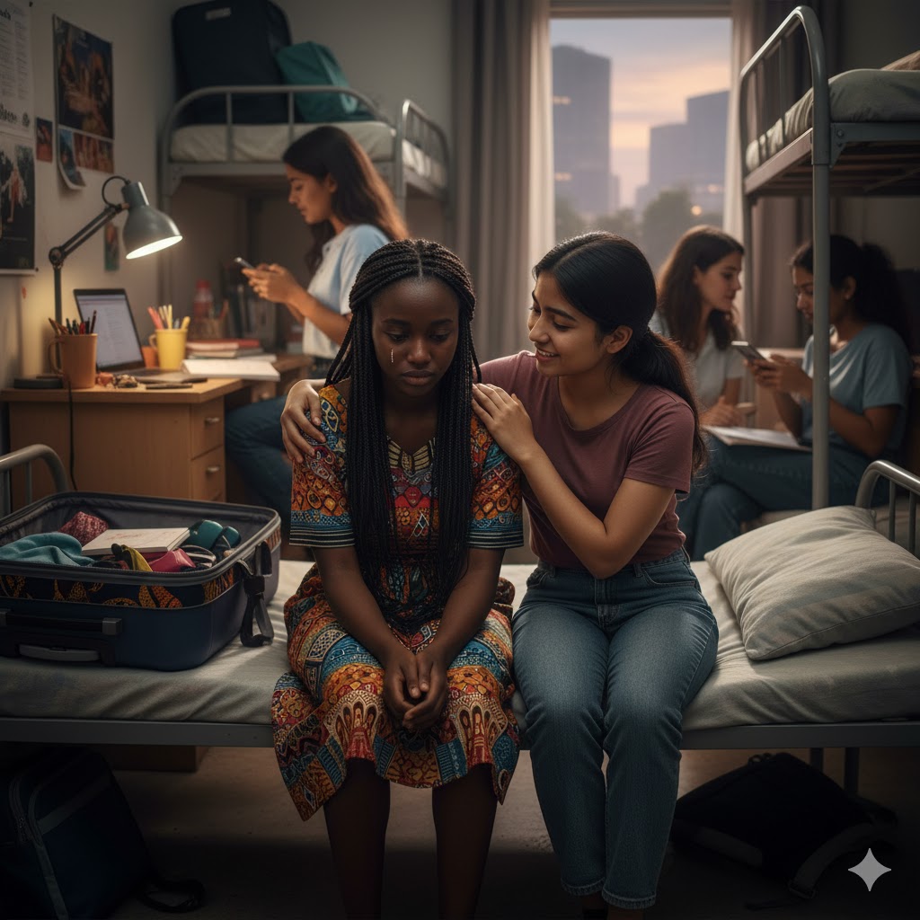 మెల్లిగా, దాదాపు అందరు విద్యార్థులు, కాలేజీ వాతావరణానికి, హాస్టల్ జీవితానికి, మెస్ తిండికి అలవాటుపడ్డారు. కానీ ఒకరిద్దరు ఇంకా ఇబ్బంది పడుతూనే ఉన్నారు. వాళ్ళలో ఒకరు ఆఫ్రికాఖండం లో కెన్యా దేశంనుంచి వచ్చిన ‘గుగు’ అనే అమ్మాయి. మొదటసారిగా తల్లిదండ్రులను వదలిరావడం, దేశం కానీ దేశంలో అంతా కొత్తవ్యక్తుల మధ్య బతకడం, ఆహార, విహారాలలో ఎంతో మార్పు... వీటన్నింటికి తట్టుకోలేకపోయింది. ఎంత సెల్ ఫోన్ ఉన్నా, తల్లిదండ్రులను రోజు చూస్తూ వీడియోకాల్ లో మాట్లాడినా, ఆ దూరం తను అనుభవిస్తోంది. ఒకరిద్దరు అమ్మాయిలు కలగజేసుకుని ధైర్యం చెప్పే ప్రయత్నం చేసారు. కానీ ‘గుగు’ రోజూ పొద్దున్న, సాయంత్రం కన్నీళ్ళు పెట్టుకుంటూనే ఉంది .
