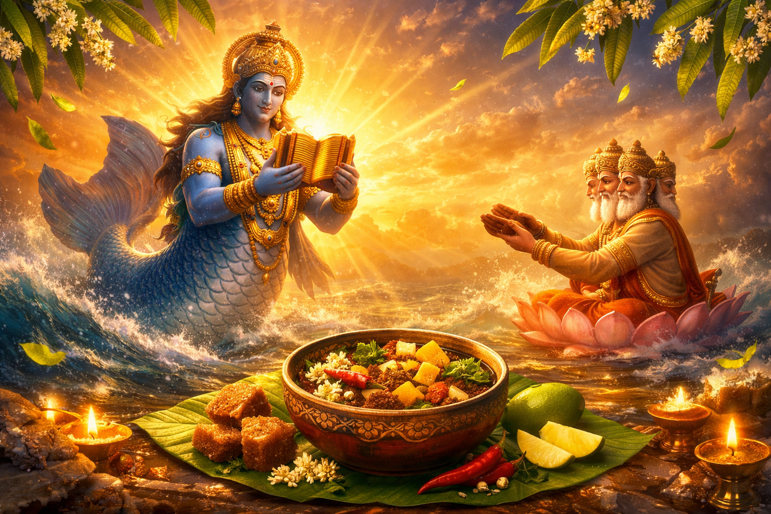 సంవత్సరానికి తొలిరోజైన ఉగాదినాడు సూర్యోదయానికి ముందరే నిద్రలేచి తైలాభ్యంగన స్నానం చేసి తీరాలని చెప్తారు పెద్దలు. ఒంటికి నువ్వులనూనెని పట్టించి చేసే శిరః స్నానమే తైలాభ్యంగనం. సంవత్సరపు ఆరంభాన్ని ఇలా శుచిగా, ఆరోగ్యంగా ప్రారంభించాలన్నది ఇందులో ఆంతర్యం. ఈ రోజు సూర్యోదయం కంటే ముందే, అంటే బ్రహ్మ ముహూర్తంలో లేవండి. గోరువెచ్చని నువ్వుల నూనెతో తల నుంచి పాదాల వరకు నెమ్మదిగా మర్దనా చేసుకోండి. అయితే ఈసారి దాన్ని ఒక ధ్యానంలా చేయండి. నూనె రాసుకుంటున్నప్పుడు, లాస్ట్ ఇయర్ టెన్షన్స్, నిరాశ, నెగటివిటీ అన్నీ మీ శరీరం నుండి బయటకు వెళ్లిపోతున్నాయని బలంగా ఫీల్ అవ్వండి. ఈ ఆయిల్ మీ స్కిన్కే కాదు, మీ సోల్కి కూడా హీలింగ్ ఇస్తోందని అనుకోండి. అభ్యంగన స్నానం వెనుక ఉన్న సైన్స్ కూడా ఇదే: ఇది రక్తప్రసరణను మెరుగుపరిచి, మిమ్మల్ని రిఫ్రెష్ చేస్తుంది.