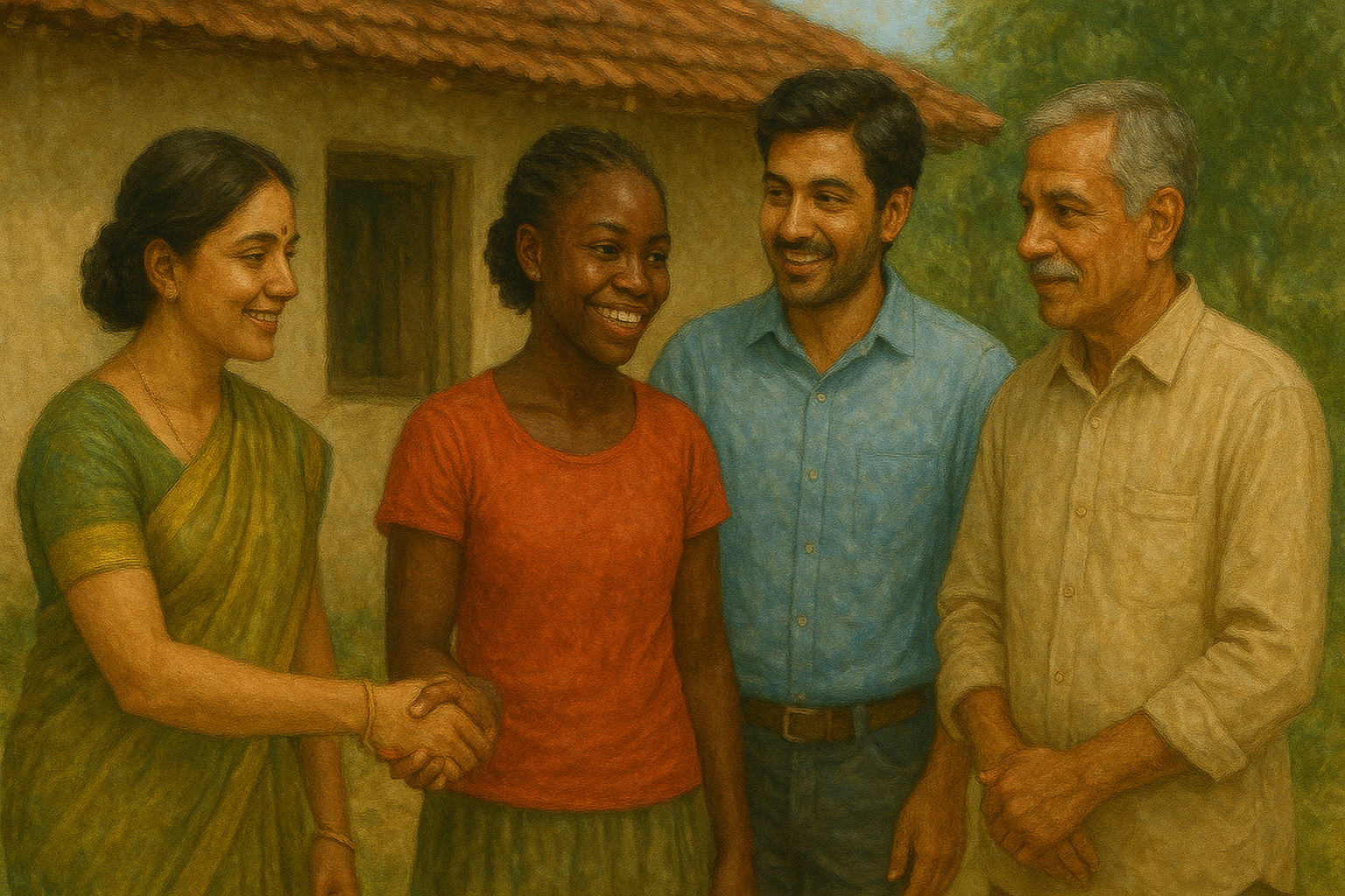 “గుగు అని మా కాలేజీలోనే మాతోనే చదువుతోంది. కెన్యా దేశం నుంచి వచ్చింది. ఆ అమ్మాయికి మన దేశం లో చుట్టాలు ఎవరూ లేరట .తెలుగుకాని మరే ఇతర భారత బాషలు కాని రావు. ఏదో ఒకటీ అరా తెలుగుముక్కలు నేర్చుకుంది. పాపం ఒక్కత్తే ఉంది కదా అని మా ఊరు తీసుకొచ్చాం. అలాగే మీ ఊరు వచ్చాం. పండగ పుటా ఇక్కడ అన్ని వింతలు, విశేషాలు చూస్తుంది అని” అన్నాడు ఆయుష్.