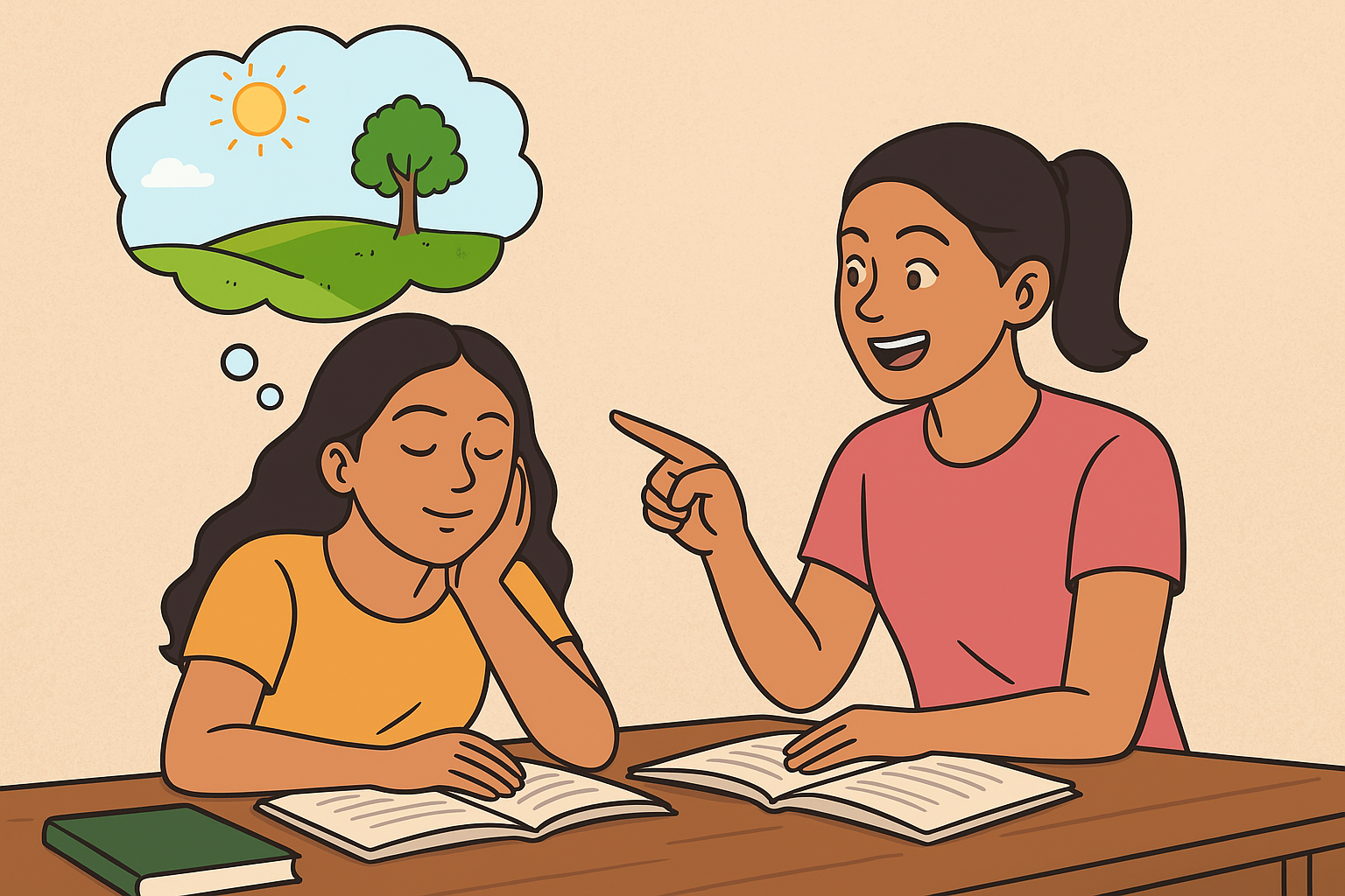 ఆ మాటలతో ఇటు తిరిగిన తారను చూసి మళ్లీ అనితే అంది. “పుస్తకాలు స్టడీ చేసే మాట ఎలా ఉన్నా... పావుగంట నుంచి నువ్వలా శూన్యంలోకి చూస్తూ స్టడీ చేస్తుంటే... నేను నీ భంగిమను స్టడీ చేయాల్సి వస్తోంది”