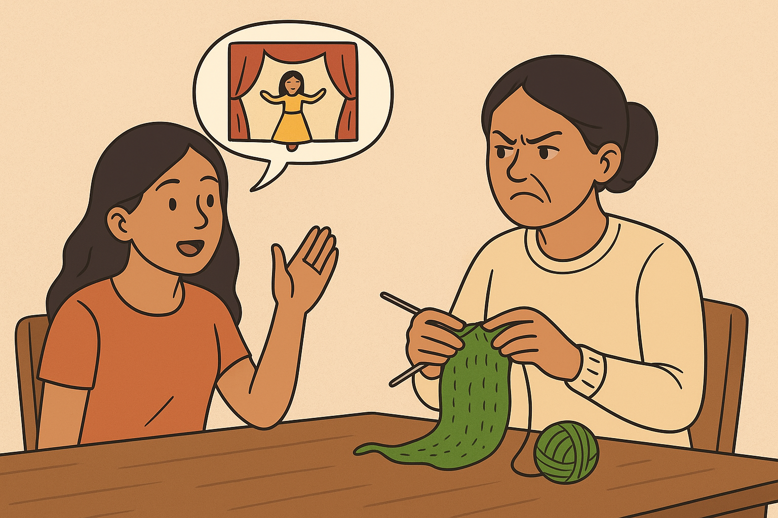 “ఏం చెప్పమంటావు? నాటక రంగంలో అడుగుపెట్టడం అంటే కాలేజీకి వెళ్లి ఆడుతూ పాడుతూ చదువుకోవడం అనుకున్నావా? అక్కడి వాతావరణానికి నువ్వు తట్టుకోగలనే అనుకుంటున్నావా?