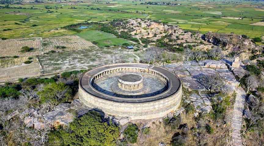 వలయాకారంలో నిర్మించబడిన ఈ ఆలయమే భారత పార్లమెంట్ భవనం నిర్మాణానికి ప్రేరణగా మారిందని చెప్తారు.