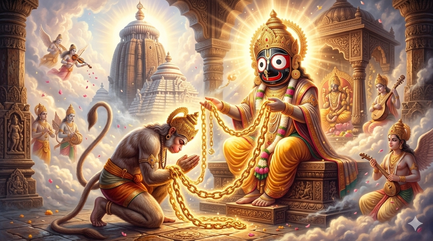 అసలు జగన్నాథుడు హనుమంతుడిని బంగారు గొలుసులతో బంధించాడు అనడంలో ఉన్న అసలు అర్థం ఏంటంటే... అవి కేవలం సంకెళ్లు కాదు, ఆయన దైవిక శక్తిని పూరీ క్షేత్ర రక్షణ కోసం స్థిరంగా నిలపడం అన్నమాట. అంటే, ఆ సంకెళ్ళతో జగన్నాథుడు హనుమంతుడిని బంధించలేదు... ఆయన అపారమైన శక్తిని ఆ క్షేత్రానికి ఒక రక్షణ కవచంగా మార్చాడు!