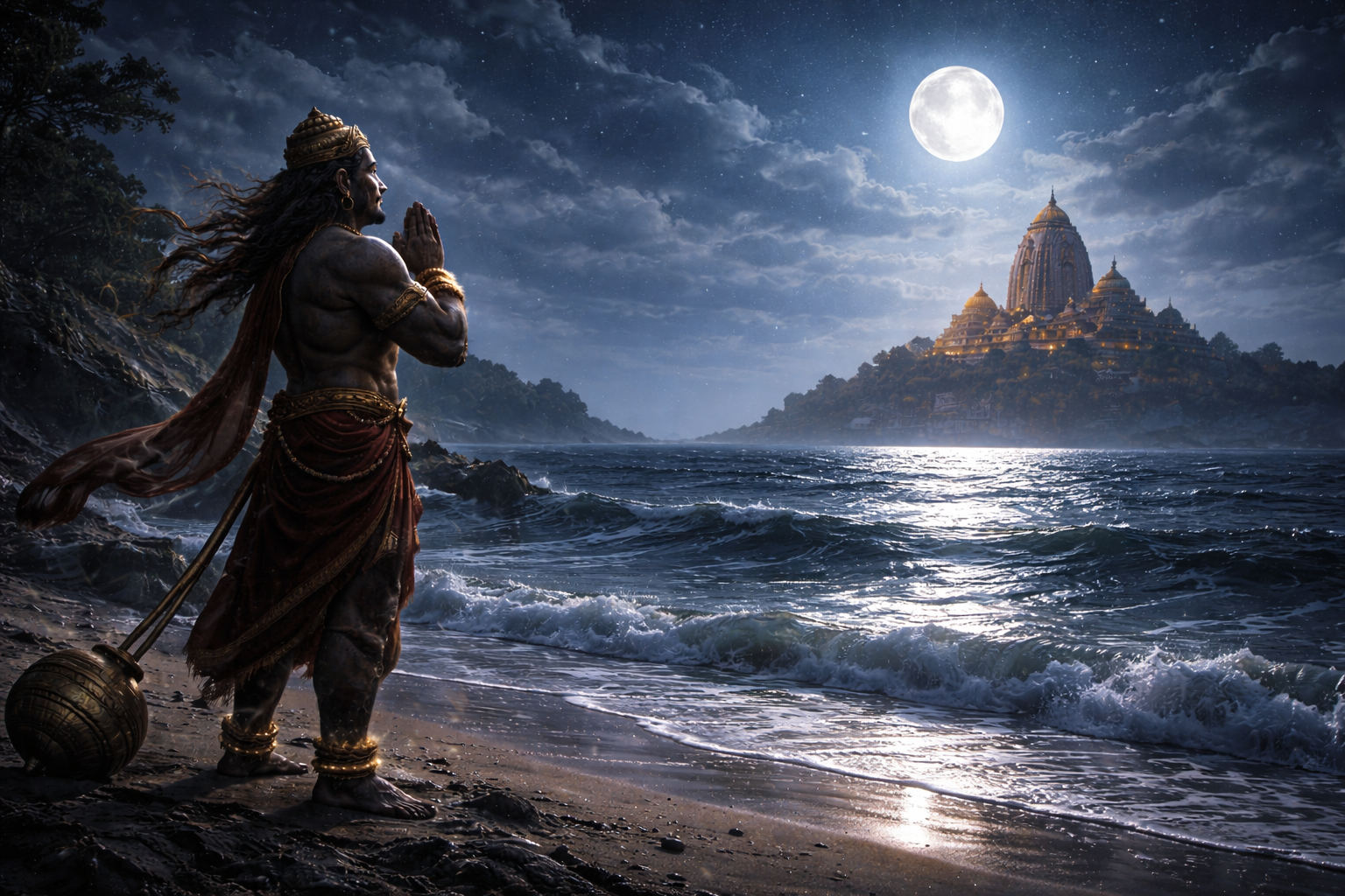 పురాణ కథల ప్రకారం, హనుమంతుడి ఈ బలహీనతను సముద్రుడు గమనించాడు. ఒకరోజు హనుమంతుడితో, "ఆంజనేయా, రేయింబవళ్లు ఇక్కడ కాపలా కాస్తున్నావు సరే, కానీ నీ స్వామిని చూసుకోకుండా ఏం భక్తి నీది? ఆయన కమలం లాంటి కళ్ళు చూసి నీకు ఎన్ని రోజులయ్యింది? దేవుడి దర్శనం కన్నా గొప్ప భాగ్యం ఉంటుందా?" అని హనుమంతుని భక్తిని మరింత రెచ్చగొట్టాడు.