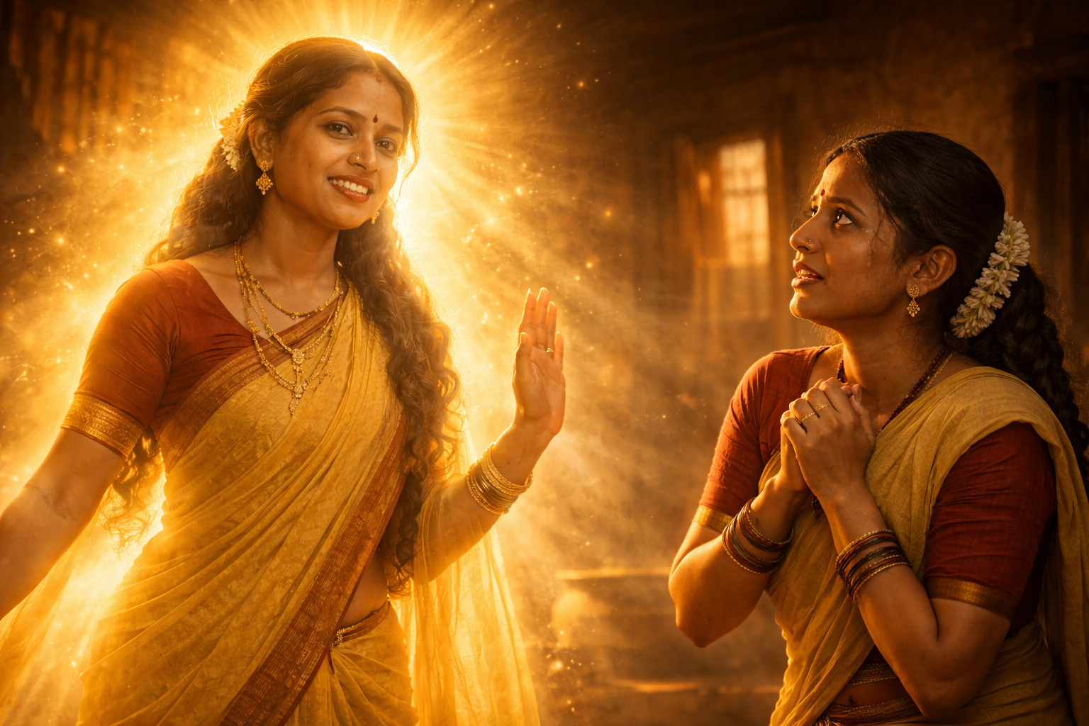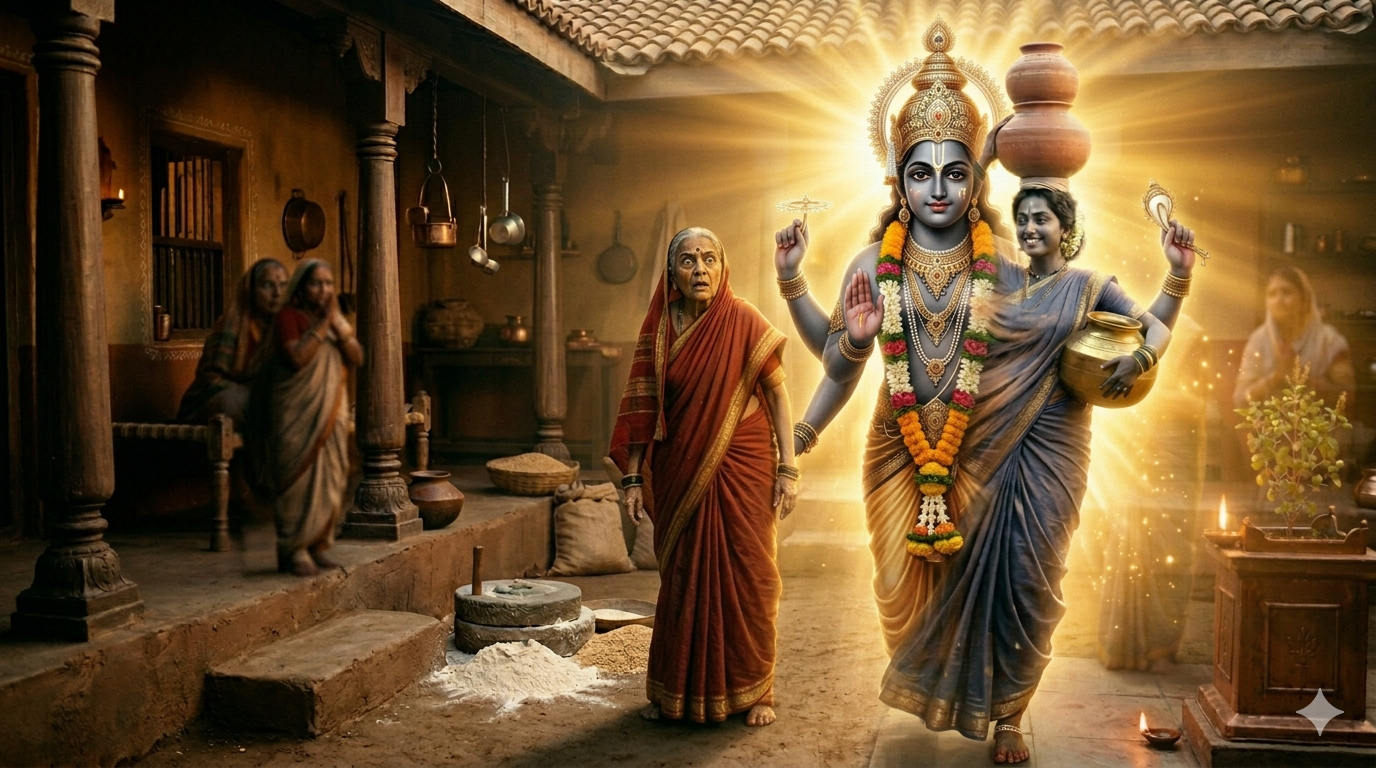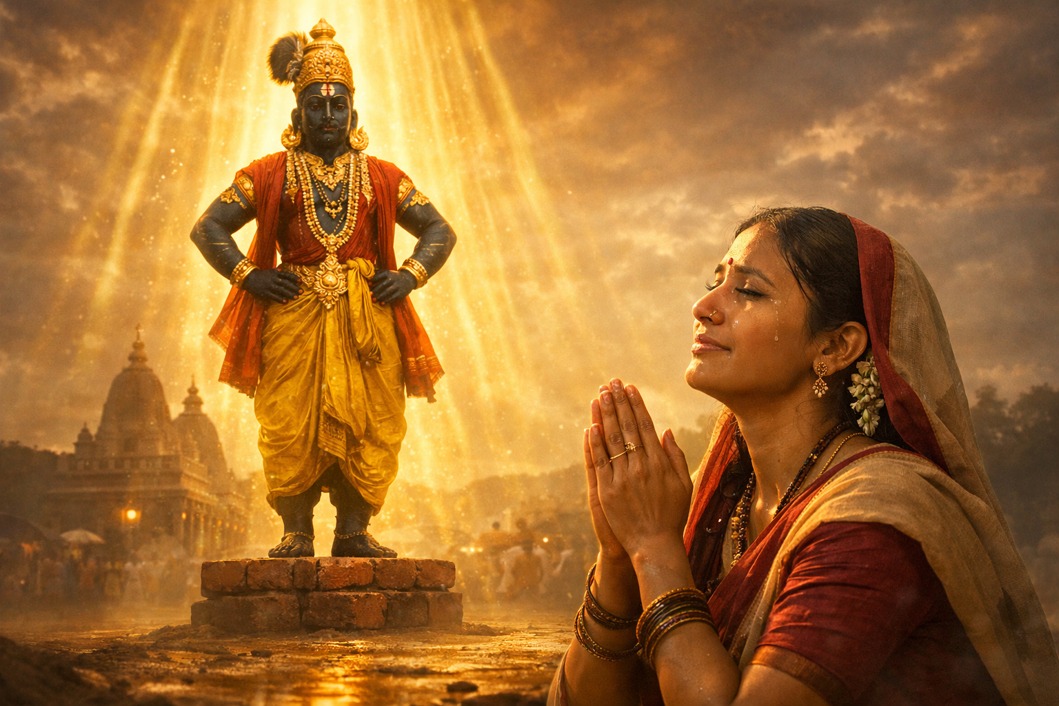 ఈ విషయం తెలుసుకున్న అత్త, భర్త కోపంతో ఊగిపోయారు. "ఇల్లు వదిలి పారిపోతావా?" అంటూ ఆమె జుట్టు పట్టుకుని లాక్కొచ్చి, ఇంట్లోని ఒక స్తంభానికి తాళ్లతో కట్టేశారు. వాళ్లు ఆమె శరీరాన్ని బంధించగలిగారు కానీ, ఆమె మనసును కాదు. ఆ కట్లతో, ఆకలిదప్పులతో అలమటిస్తూ కూడా, ఆమె మనసు పూర్తిగా పండరినాథుని సన్నిధిలోనే ఉంది. "రంగా... పాండురంగా... నాకీ బంధనాలేంటి స్వామీ? నిన్ను చూడాలన్న నా ఆరాటం నీకు తెలియదా? ఈ జన్మకు నీ దర్శనం నాకు లేదా?" అని కన్నీళ్లతో వేడుకుంది. భక్తురాలి గుండెల్ని పిండేస్తున్న ఆ పిలుపు, కరుణామయుడైన విఠలుడ్ని కదిలించకుండా ఉంటుందా?
