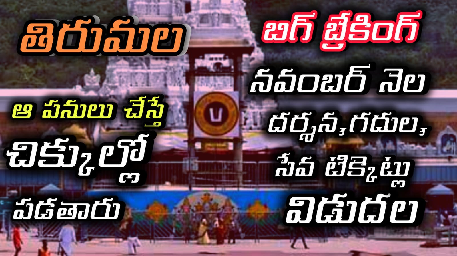 Want to know more about me and my work?నవంబర్ నెలకు సంబంధించి తిరుమల శ్రీవారి దర్శన, గదుల, వివిధ సేవల టిక్కెట్లకు సంబంధించి ttd ప్రకటన విడుదల చేసింది. అలాగే టిటిడి పలు కీలక నిర్ణయాలు తీసుకున్నట్టు ప్రకటించింది. రాను రాను తిరుమల కు వెళ్ళే భక్తుల సంఖ్య విపరీతంగా పెరగడంతో అలిపిరి దగ్గర నివారించలేని రద్దీ పెరుగుతోంది. ఆ కారణంగా వాహనదారులు, భక్తులు పలు ఇబ్బందులకు గురయ్యే పరిస్తితి. ఆ పరిస్తితిని నివారించడానికి టిటిడి ఈ రోజు నుంచి అంటే ఆగస్ట్ 15 నుంచి తిరుమలకు వెళ్ళే వాహనాలకు ఫాస్ట్ ట్యాగ్ తప్పనిసరి చేసింది. అలాగే తిరుమలలో వివిధ రకాలుగా ఆగడాలు మితిమీరుతున్నాయి. వాటిని నివారించే చర్యల్లో భాగంగా కొన్ని నియమాలు ప్రకటించింది. వాటిని అతిక్రమించిన వారిపై కఠిన చర్యలుంటాయని కూడా ప్రకటించింది.